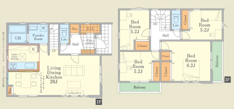 | 間取り/間取り詳細 | 4LDK / LDK20帖 / 洋室8.2帖 / 洋室5.2帖 / 洋室5.2帖 / 洋室5.2帖 | ||