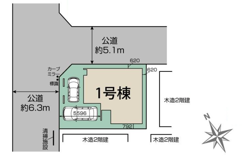 接道1 北西側 公道 幅員6.2m