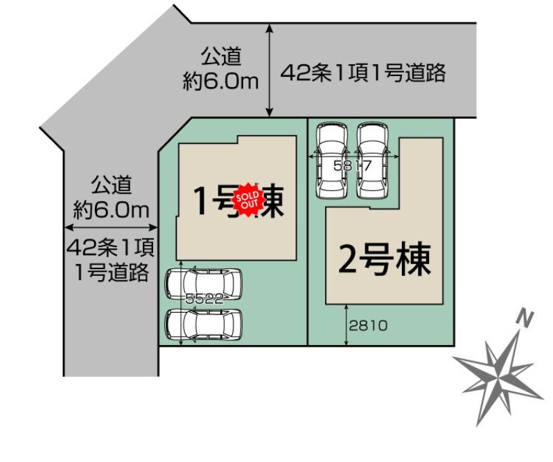 接道1 北側 公道 幅員6.0m