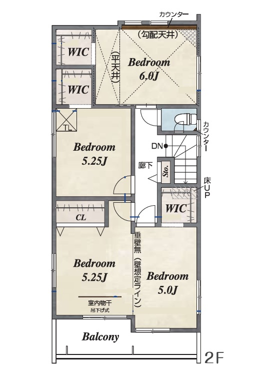 間取り/間取り詳細 4LDK  LDK18.5帖 / 洋室6.0帖 / 洋室5.25帖 / 洋室5.25帖 / 洋室5.0帖 築年月 2025年10月