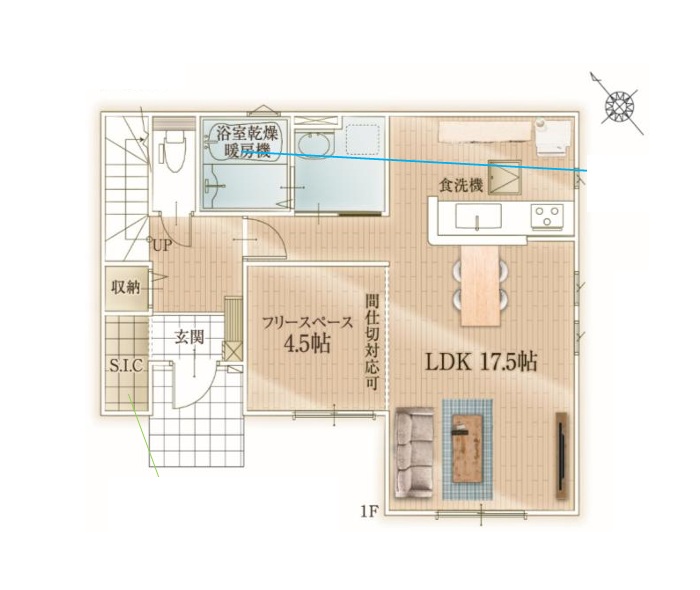 設備・条件 前道6m以上/南道路/トイレ2か所/駐車場2台以上/24時間換気システム/TVモニタ付インターホン/間取り変更可能/リビングダイニング15畳以上/対面キッチン/食器洗い乾燥機/コンロ3口以上/浴室乾燥機あり/バス・トイレ別/洗濯機置き場/独立洗面台/バルコニー/ウォークインクローゼット/床下収納/シューズインクローゼット/フラット35利用可/