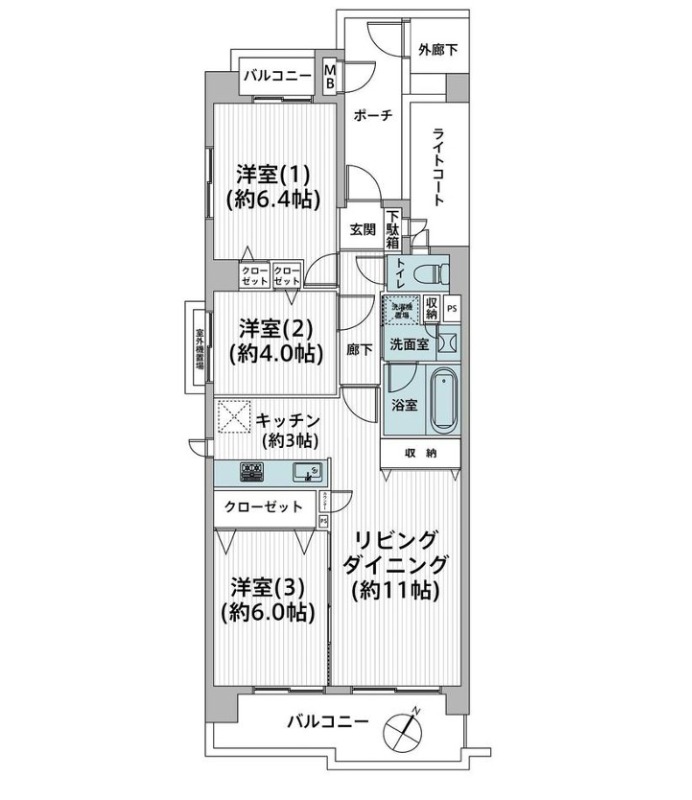 間取り/間取り詳細 3LDK / LDK11帖 / 洋室6.4帖 / 洋室6.0帖 / 洋室4.0帖