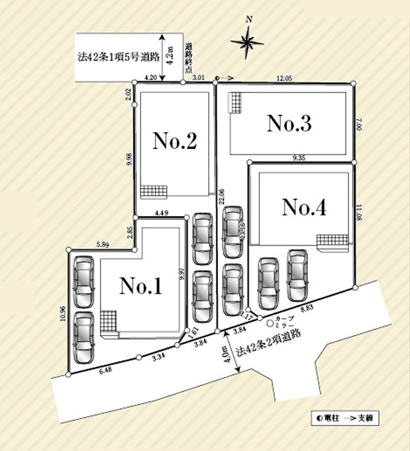 敷地内に電柱及び支線が入る場合があります。